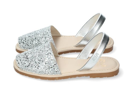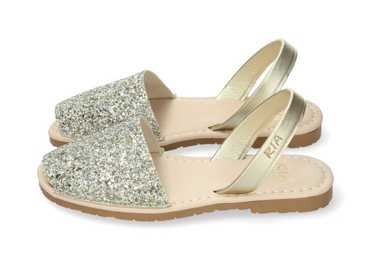 WOMANS CUSHIONED ABARCAS GLITTER SILVER GOLD